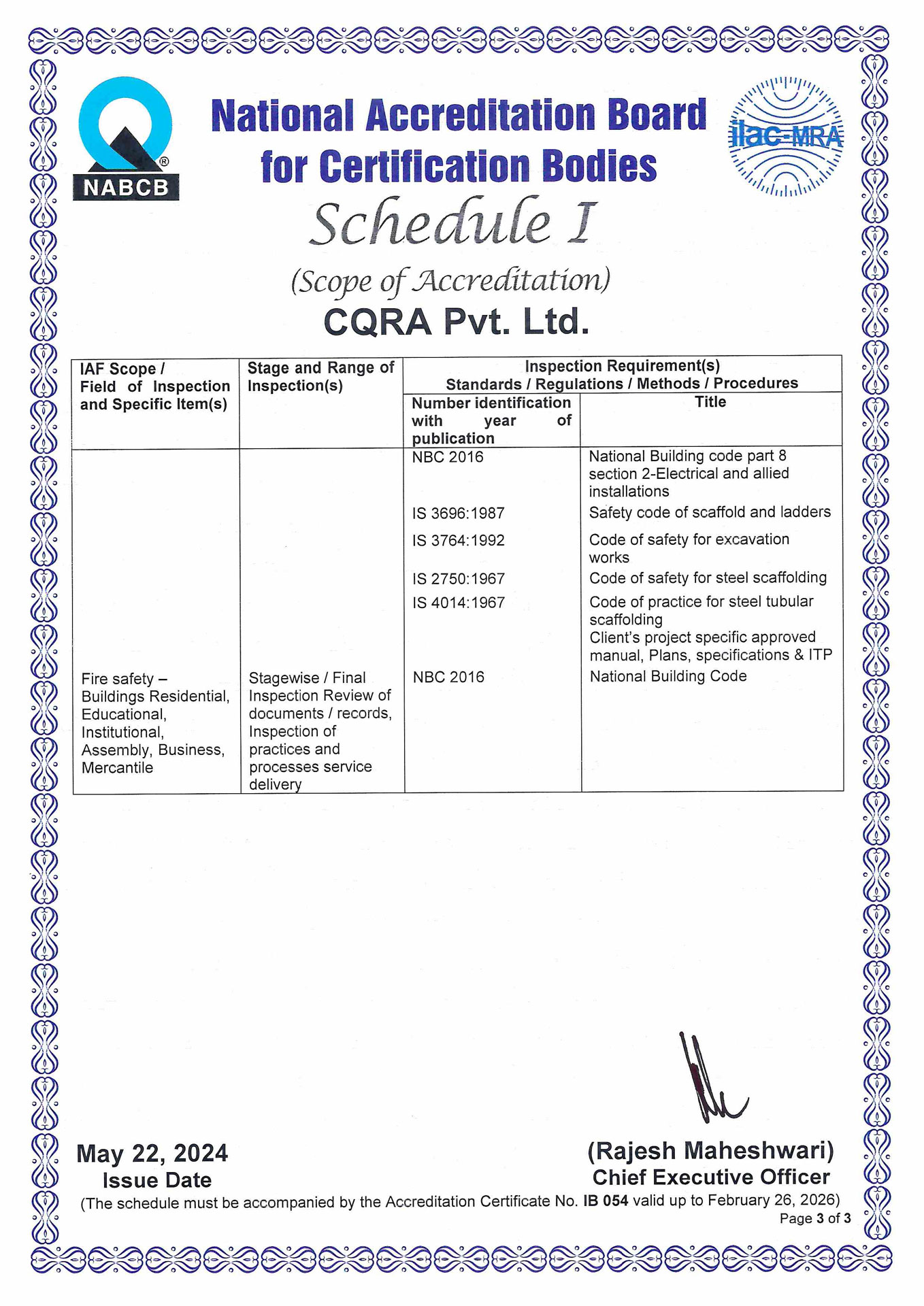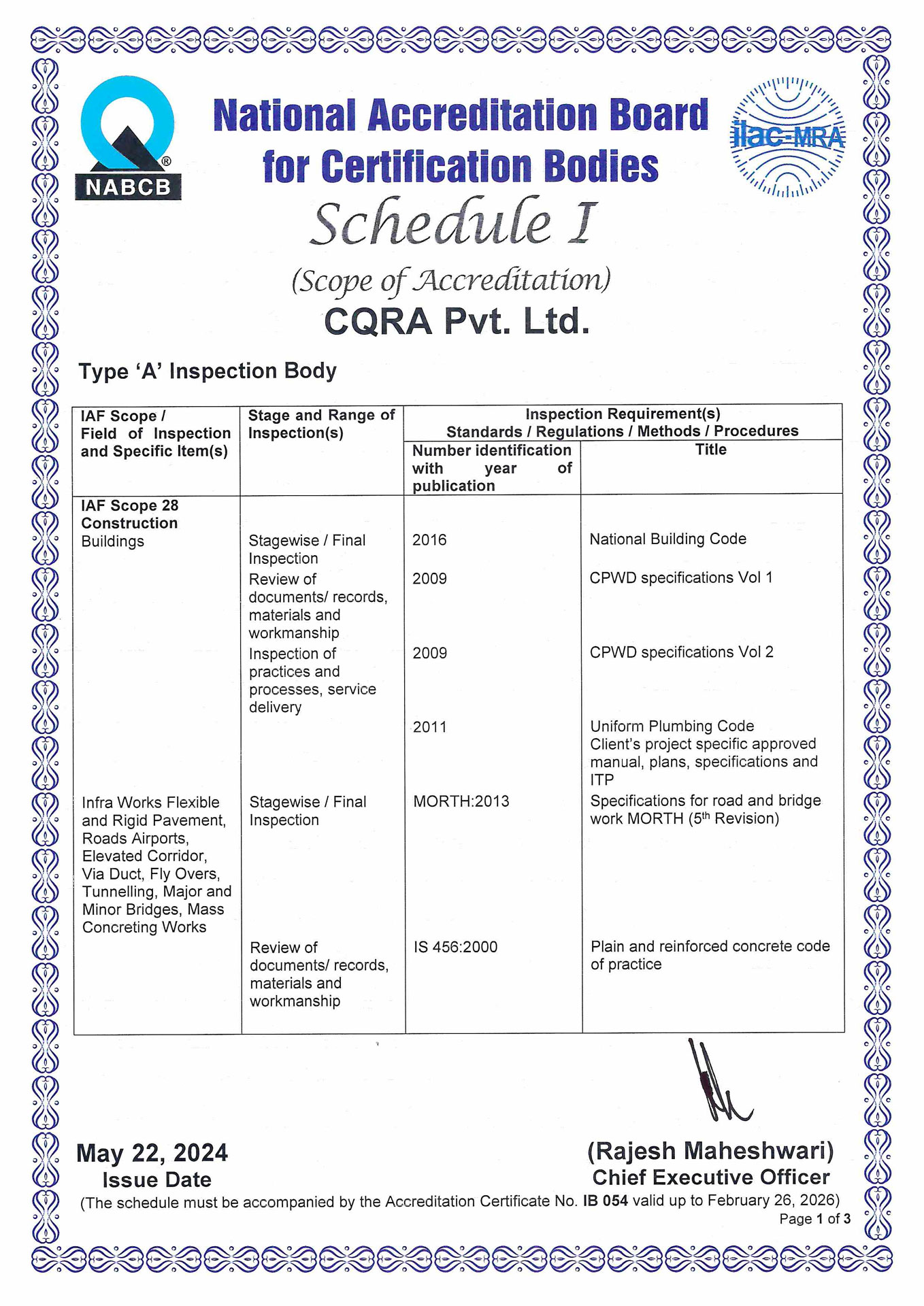 CQRA is NABCB accredited inspection body listed under registration number IB 054. We carry out independent inspections at all stages of building in process or at completion stage.